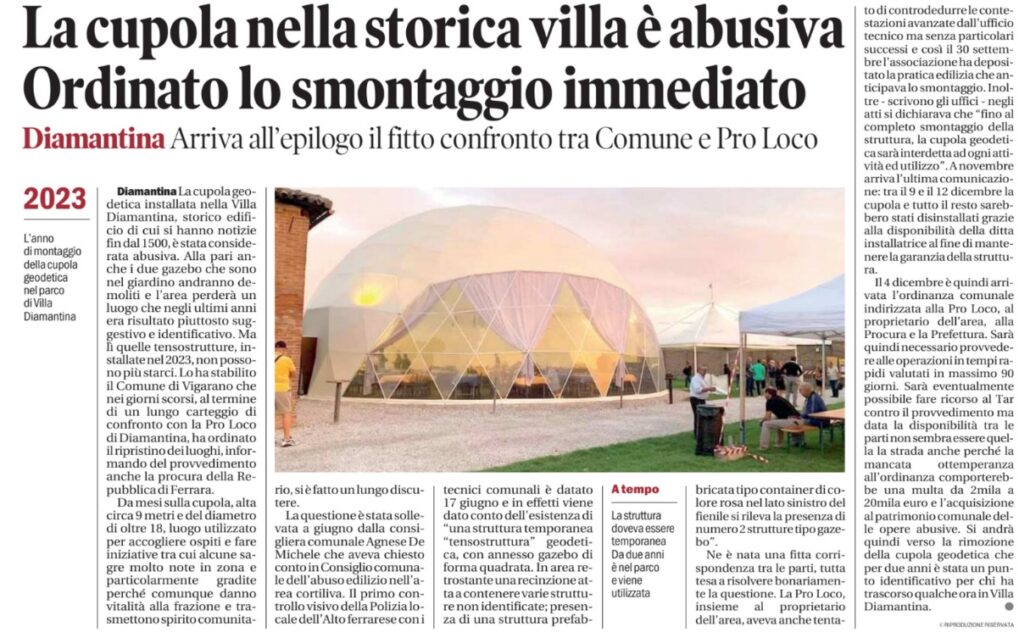 Ordinato lo smontaggio della cupola